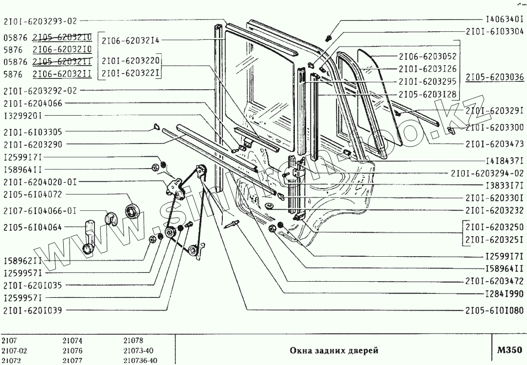 Каталог запасных частей к технике: ВАЗ-2107. Окна задних дверей