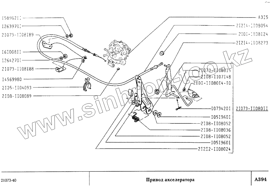 Каталог запасных частей к технике: ВАЗ-2107. Привод акселератора