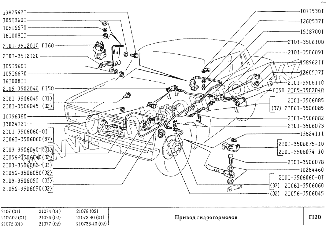 Каталог запасных частей к технике: ВАЗ-2107. Привод гидротормозов
