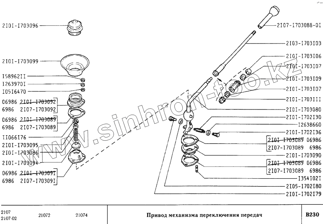 Каталог запасных частей к технике: ВАЗ-2107. Привод механизма переключения передач