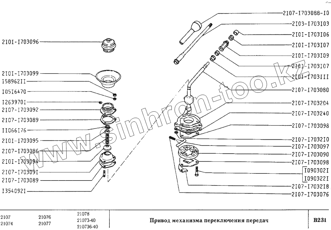 Каталог запасных частей к технике: ВАЗ-2107. Привод механизма переключения передач