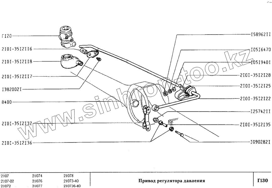 Каталог запасных частей к технике: ВАЗ-2107. Привод регулятора давления