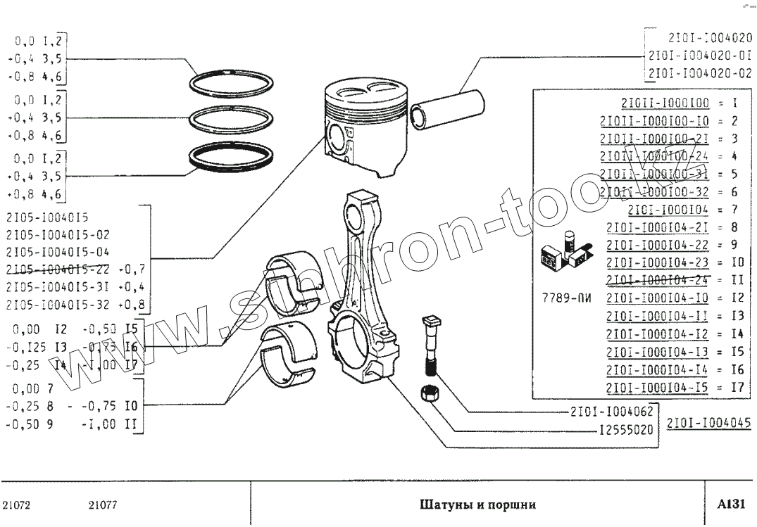 Каталог запасных частей к технике: ВАЗ-2107. Шатуны и поршни