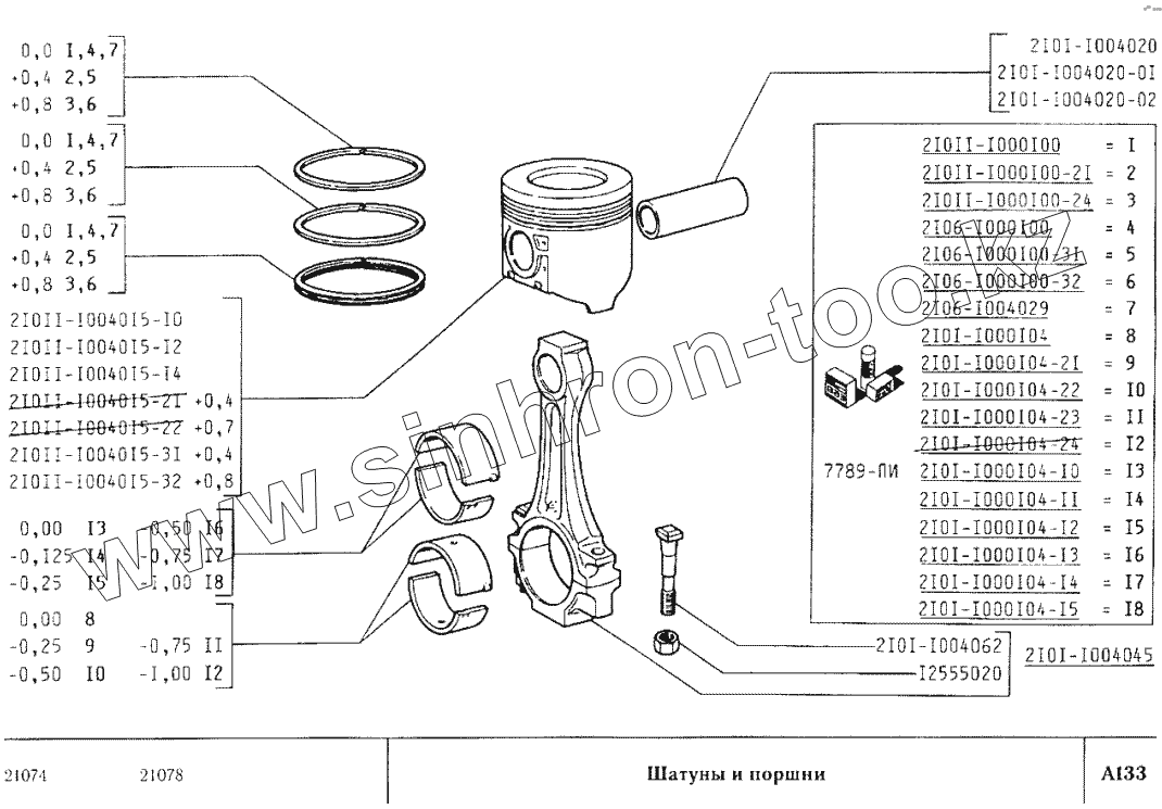 Каталог запасных частей к технике: ВАЗ-2107. Шатуны и поршни
