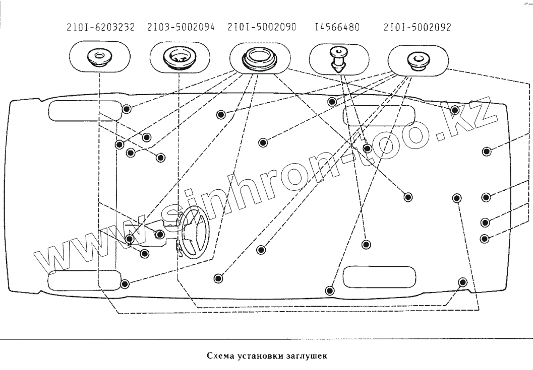 Каталог запасных частей к технике: ВАЗ-2107. Схема установки заглушек