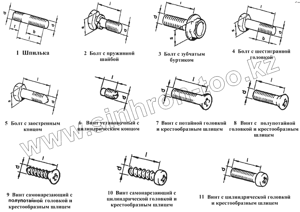 Каталог запасных частей к технике: ВАЗ-2107. Шпильки, болты, винты
