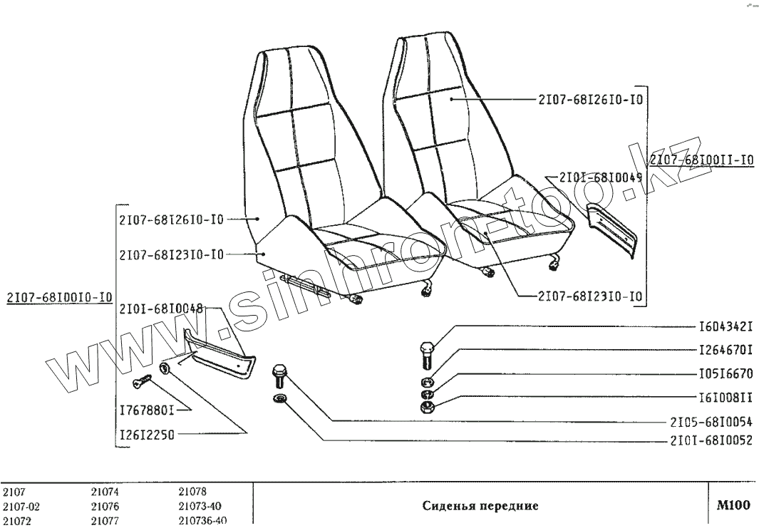 Каталог запасных частей к технике: ВАЗ-2107. Сиденья передние