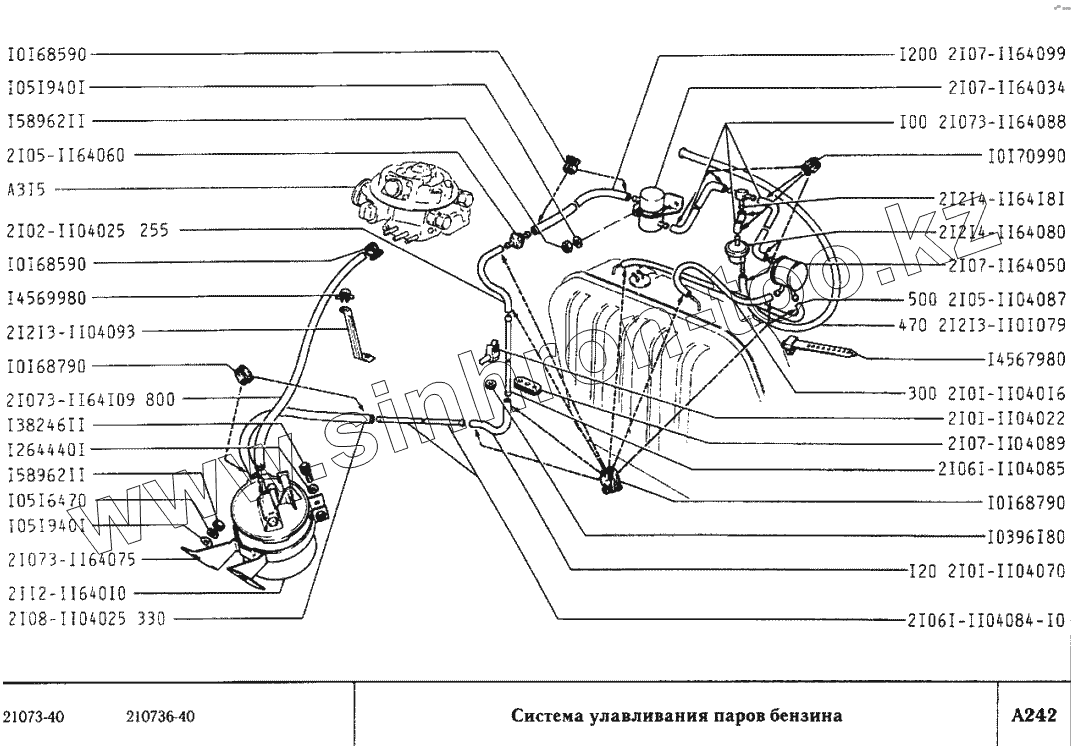 Каталог запасных частей к технике: ВАЗ-2107. Система улавливания паров бензина