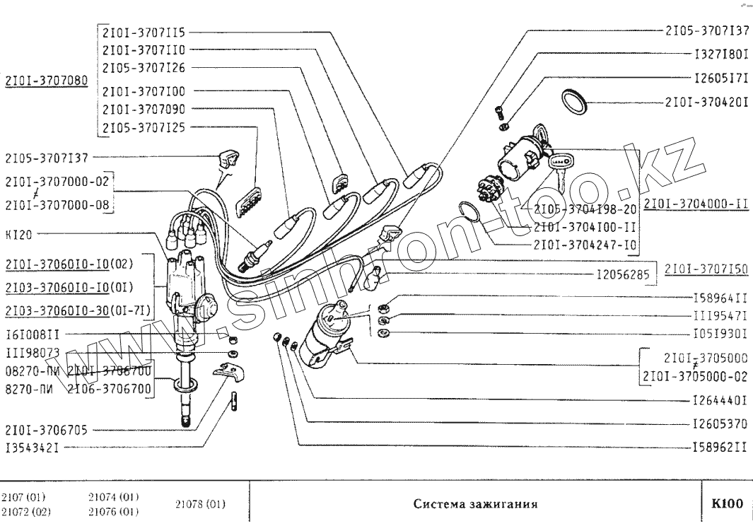 Каталог запасных частей к технике: ВАЗ-2107. Система зажигания