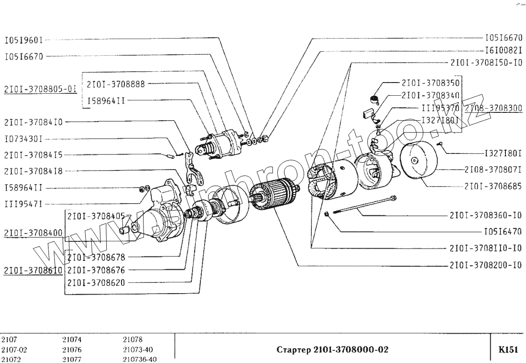 Каталог запасных частей к технике: ВАЗ-2107. Стартер 2101-3708000-02