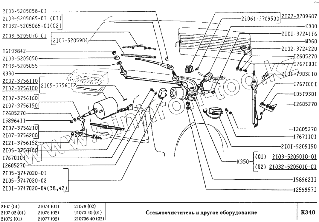 Каталог запасных частей к технике: ВАЗ-2107. Стеклоочиститель и другое оборудование