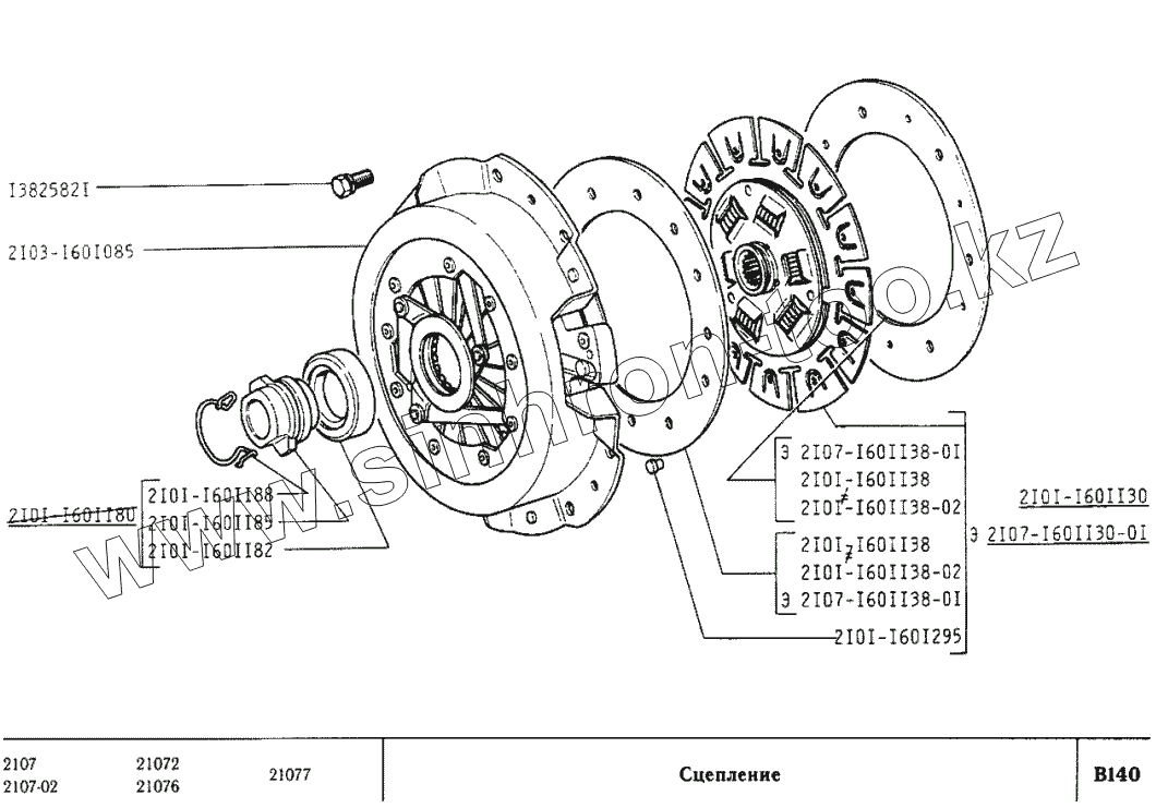 Каталог запасных частей к технике: ВАЗ-2107. Сцепление