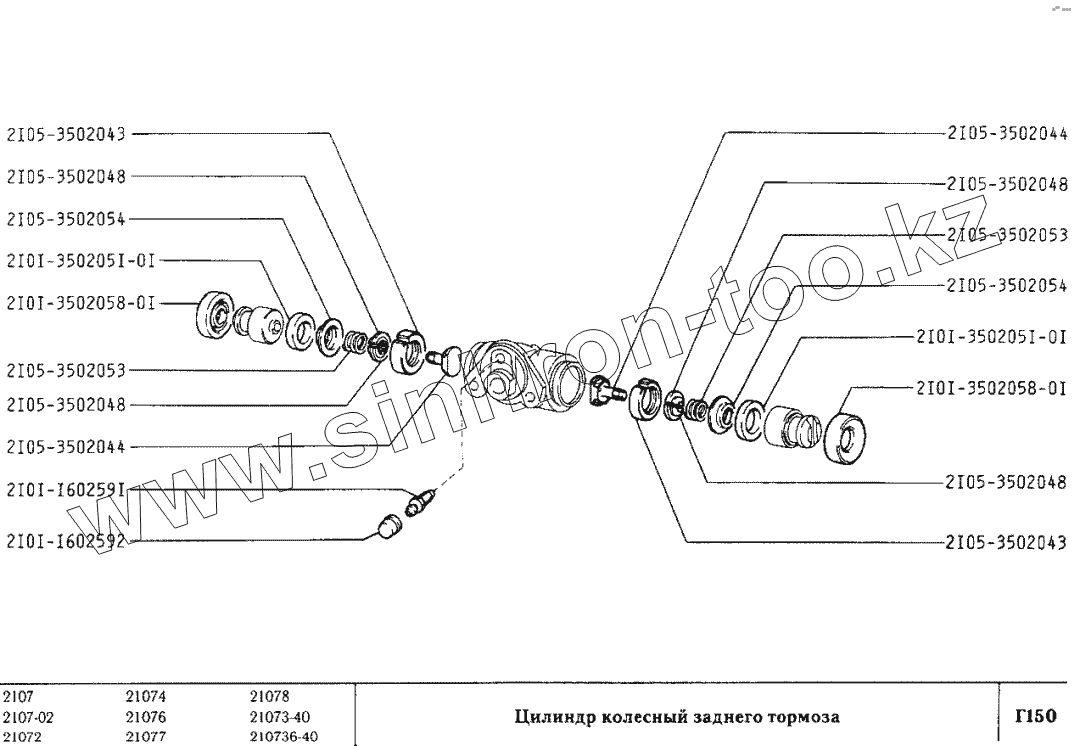 Каталог запасных частей к технике: ВАЗ-2107. Цилиндр колесный заднего тормоза