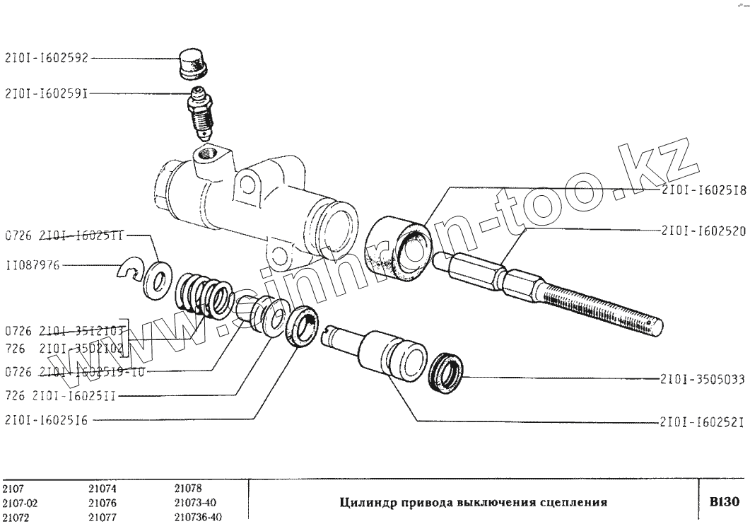 Каталог запасных частей к технике: ВАЗ-2107. Цилиндр привода выключения сцепления