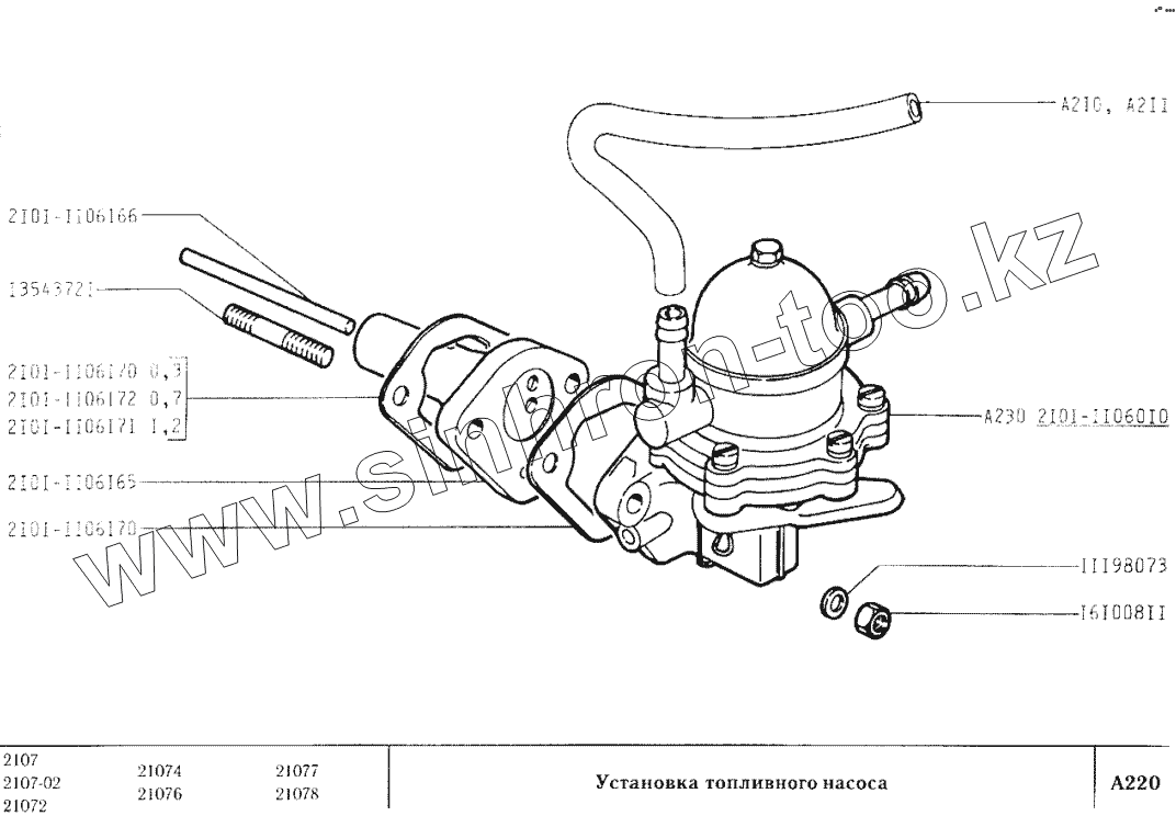 Каталог запасных частей к технике: ВАЗ-2107. Установка топливного насоса