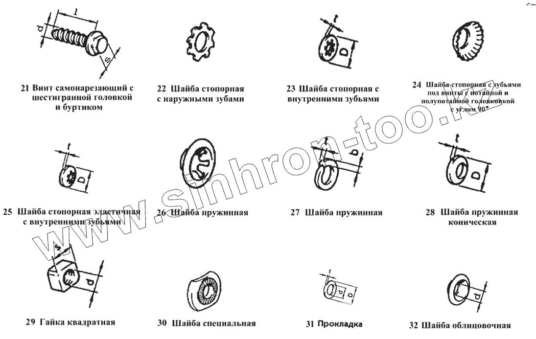 Каталог запасных частей к технике: ВАЗ-2107. Винты, шайбы, гайки