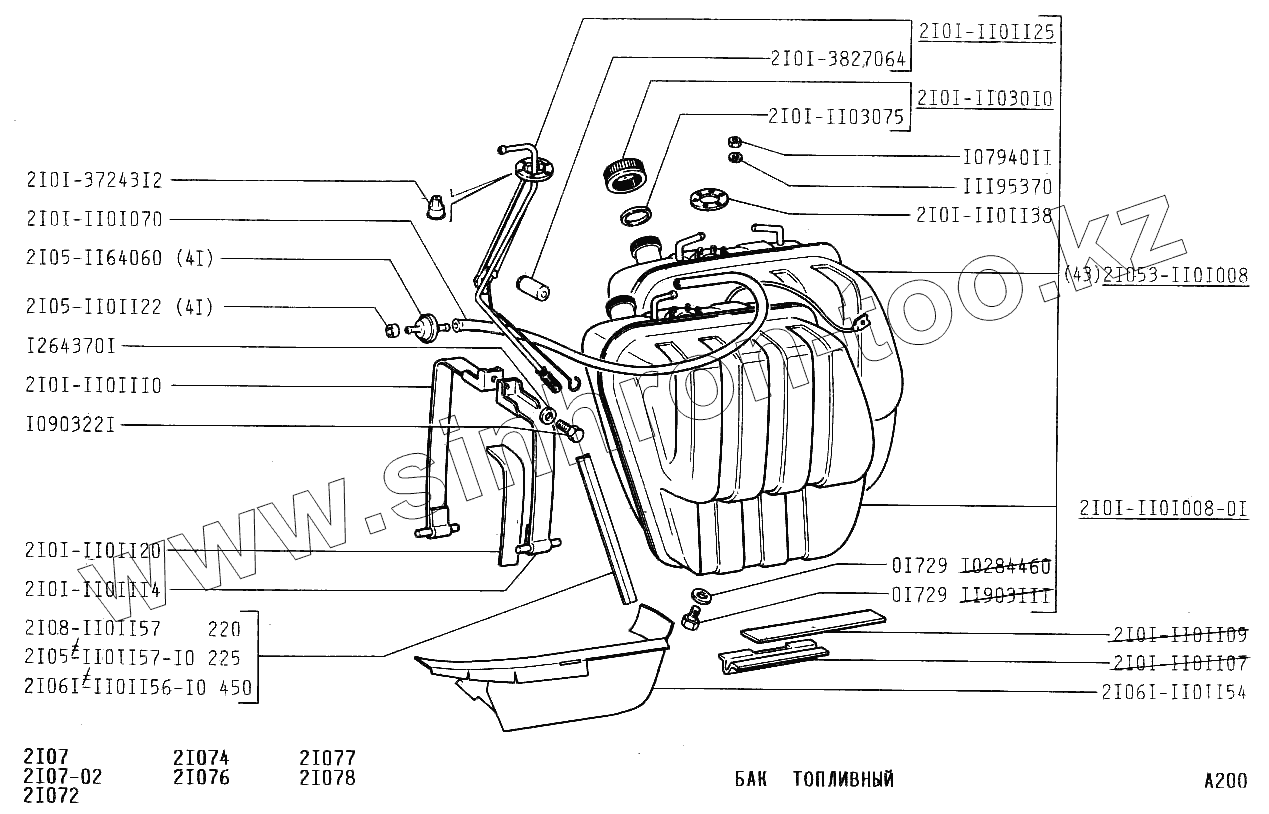 Каталог запасных частей к технике: ВАЗ-2107. Бак топливный