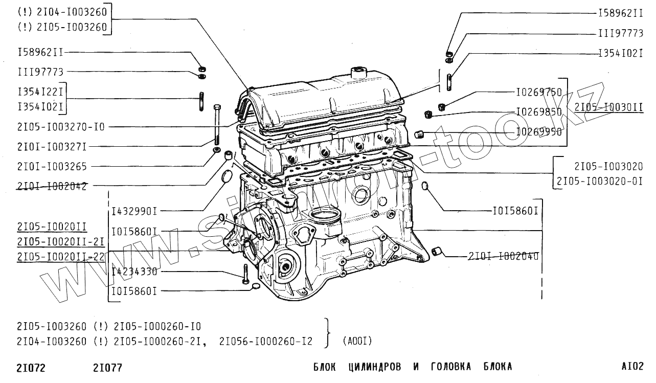 Каталог запасных частей к технике: ВАЗ-2107. Блок цилиндров и головка блока