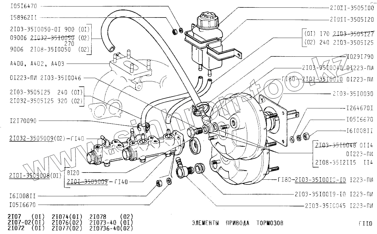 Каталог запасных частей к технике: ВАЗ-2107. Элементы привода тормозов