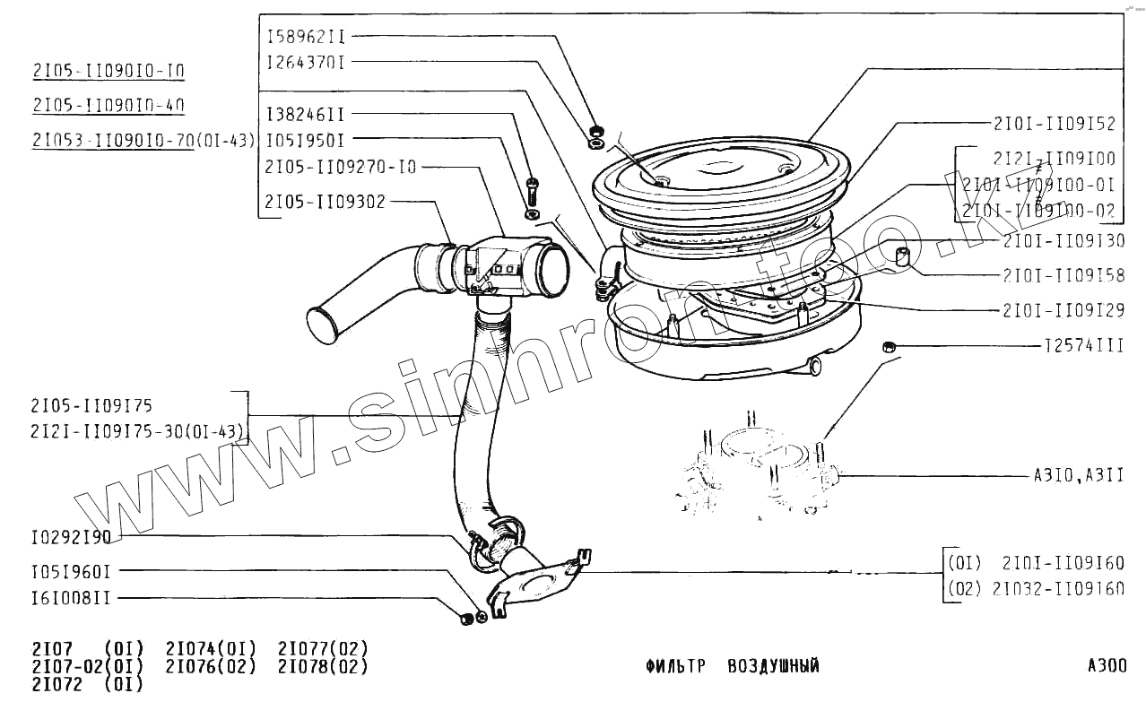 Каталог запасных частей к технике: ВАЗ-2107. Фильтр воздушный