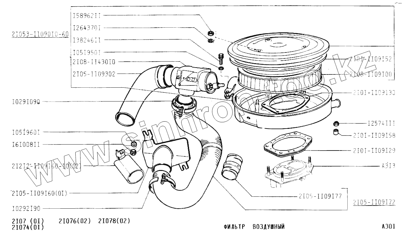 Каталог запасных частей к технике: ВАЗ-2107. Фильтр воздушный