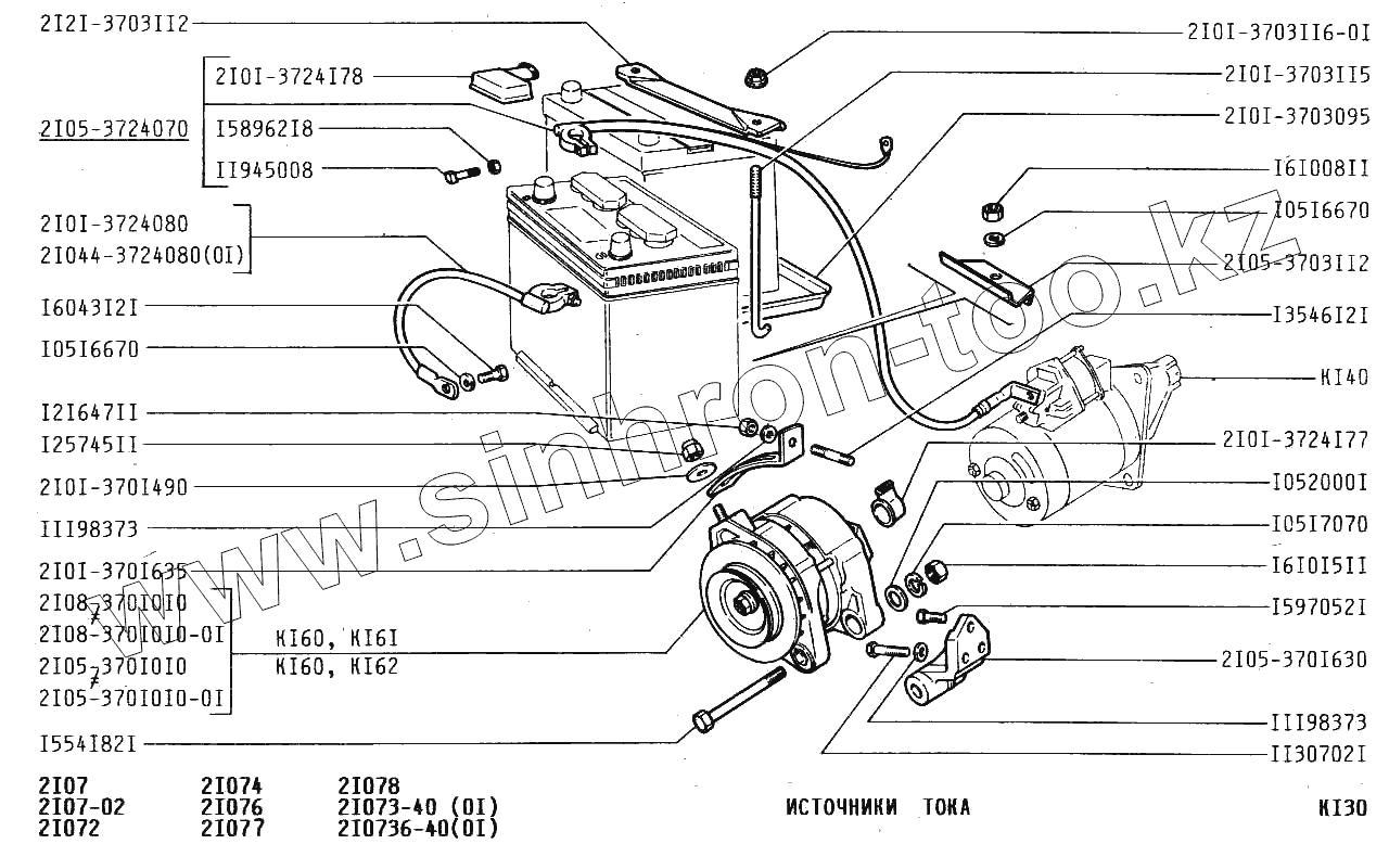 Каталог запасных частей к технике: ВАЗ-2107. Источники тока