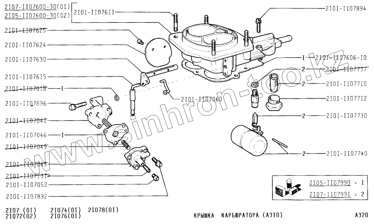 Каталог запасных частей к технике: ВАЗ-2107. Крышка карбюратора (А310)