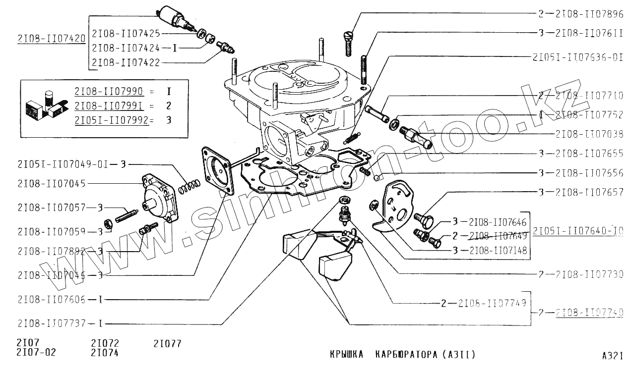 Каталог запасных частей к технике: ВАЗ-2107. Крышка карбюратора (А311)