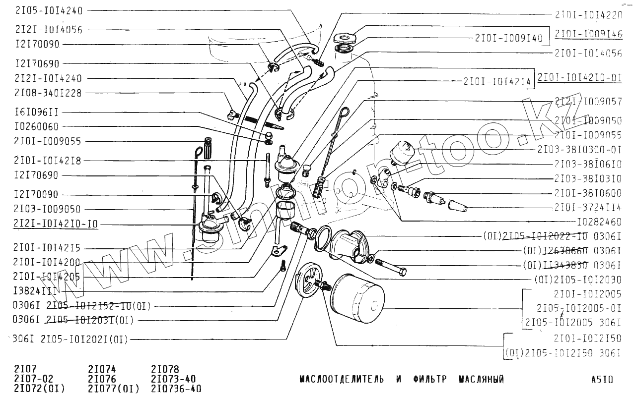 Каталог запасных частей к технике: ВАЗ-2107. Маслоотделитель и фильтр масляный