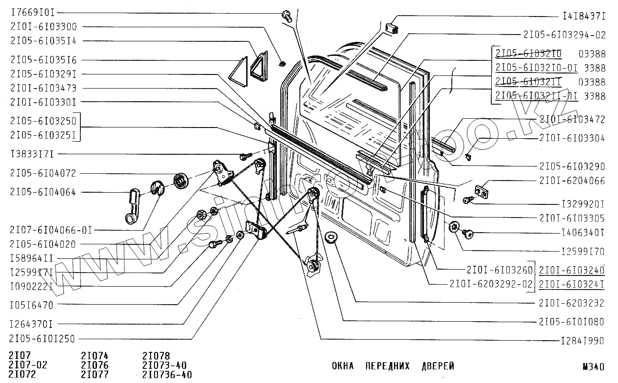 Каталог запасных частей к технике: ВАЗ-2107. Окна передних дверей