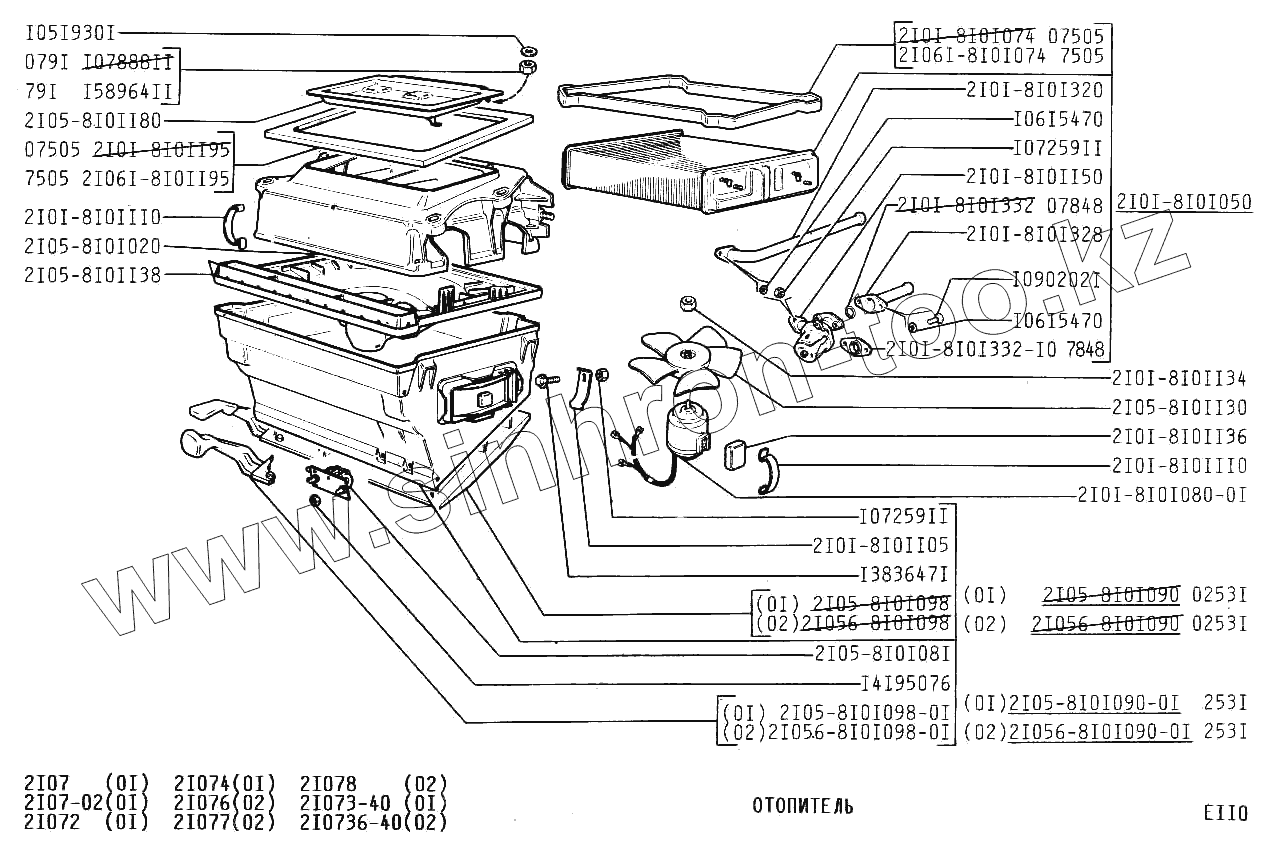Каталог запасных частей к технике: ВАЗ-2107. Отопитель