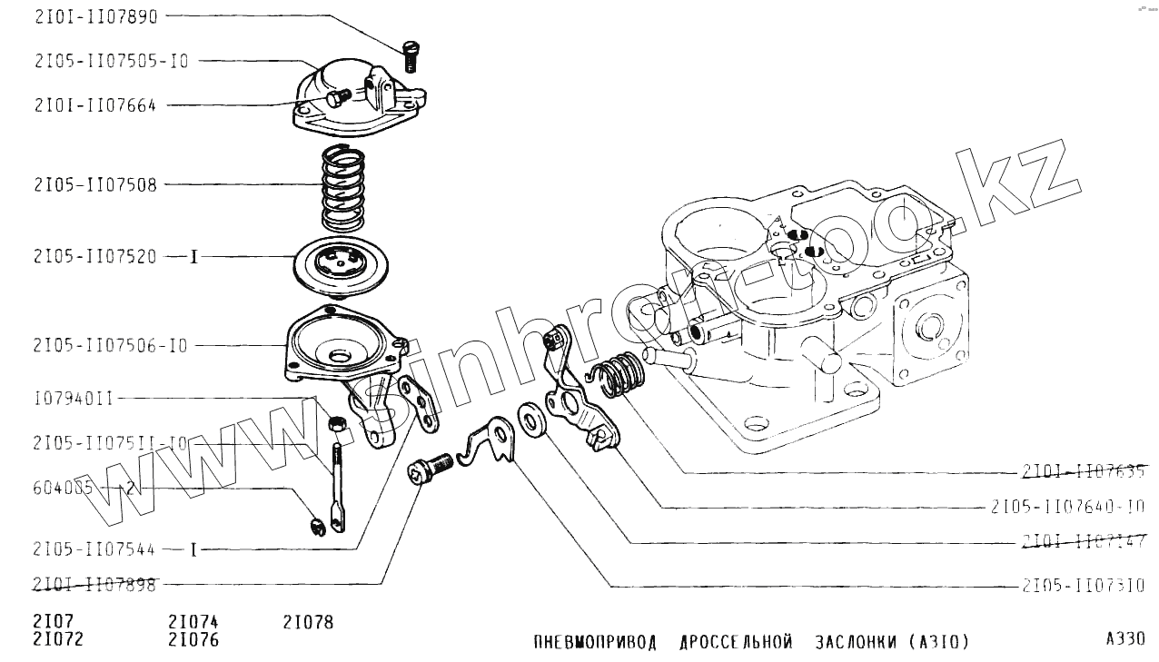 Каталог запасных частей к технике: ВАЗ-2107. Пневмопривод дроссельной заслонки (А310)