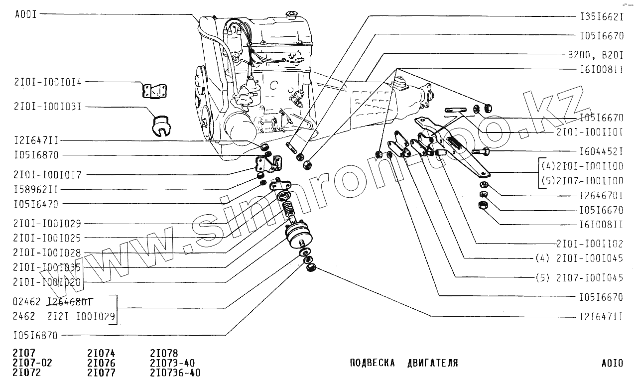 Каталог запасных частей к технике: ВАЗ-2107. Подвеска двигателя
