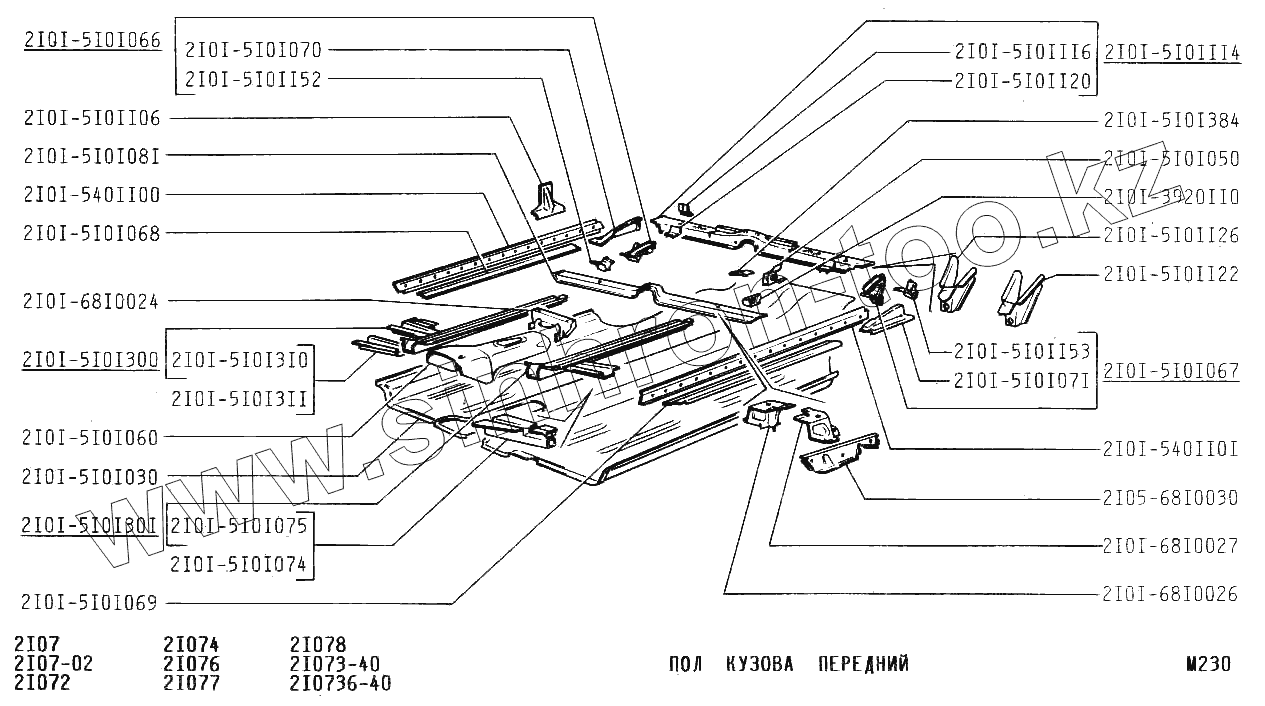Каталог запасных частей к технике: ВАЗ-2107. Пол кузова передний