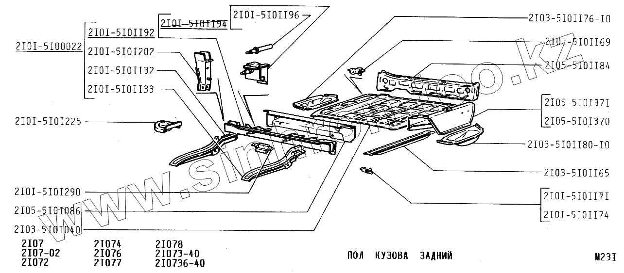 Каталог запасных частей к технике: ВАЗ-2107. Пол кузова задний