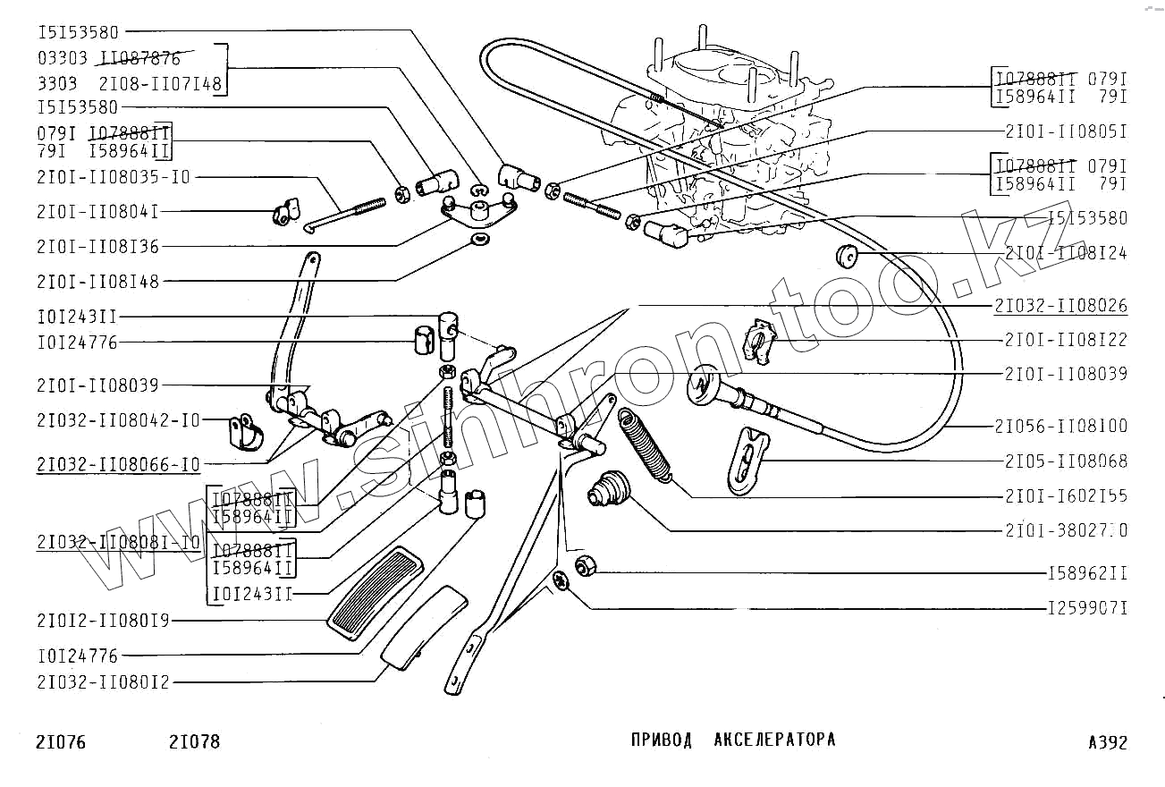 Каталог запасных частей к технике: ВАЗ-2107. Привод акселератора