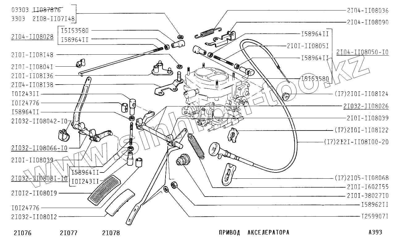 Каталог запасных частей к технике: ВАЗ-2107. Привод акселератора