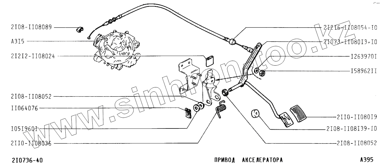 Каталог запасных частей к технике: ВАЗ-2107. Привод акселератора