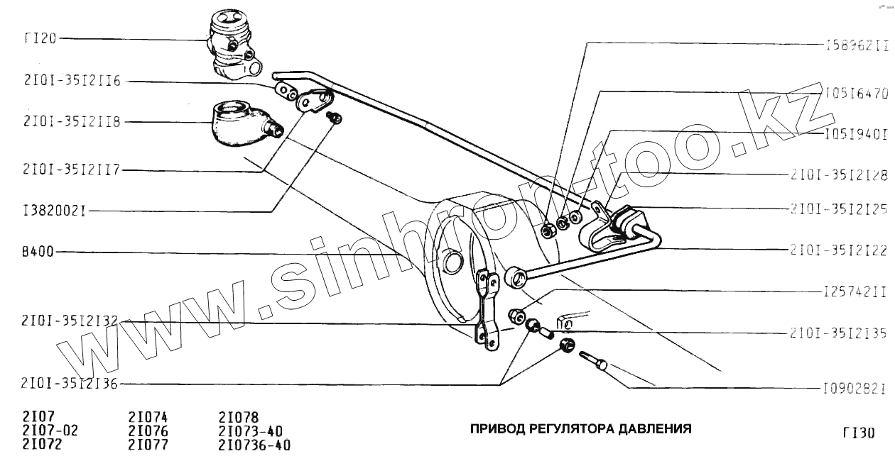 Каталог запасных частей к технике: ВАЗ-2107. Привод регулятора давления