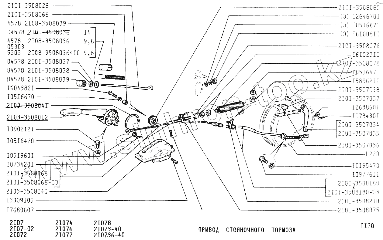 Каталог запасных частей к технике: ВАЗ-2107. Привод стояночного тормоза