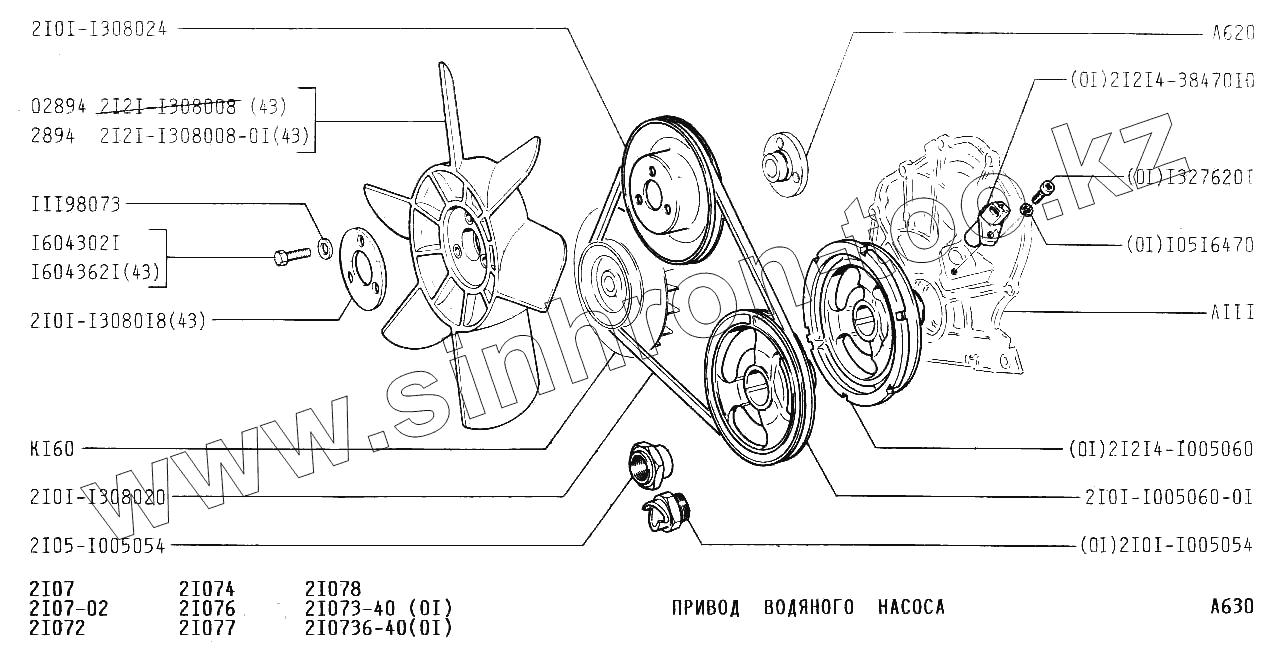 Каталог запасных частей к технике: ВАЗ-2107. Привод водяного насоса