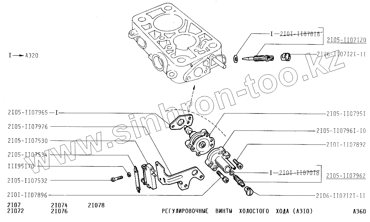 Каталог запасных частей к технике: ВАЗ-2107. Регулировочные винты холостого хода (А310)