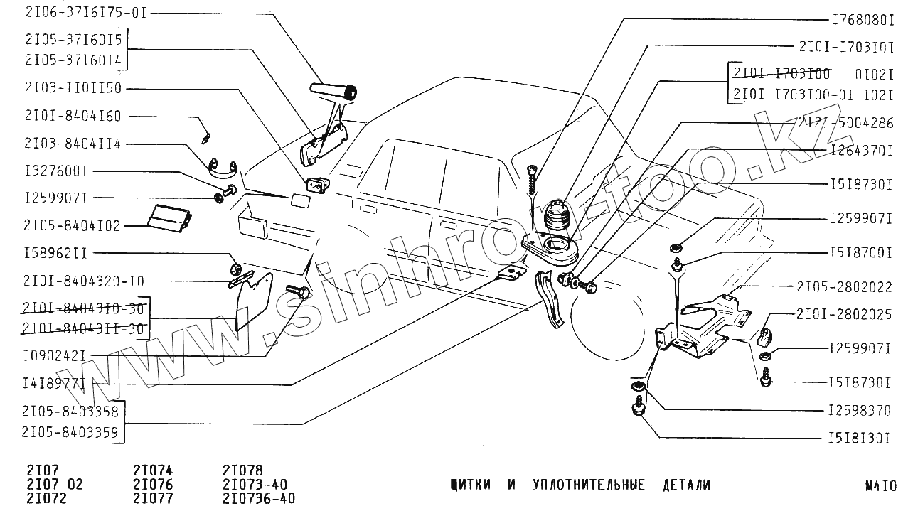 Каталог запасных частей к технике: ВАЗ-2107. Щитки и уплотнительные детали