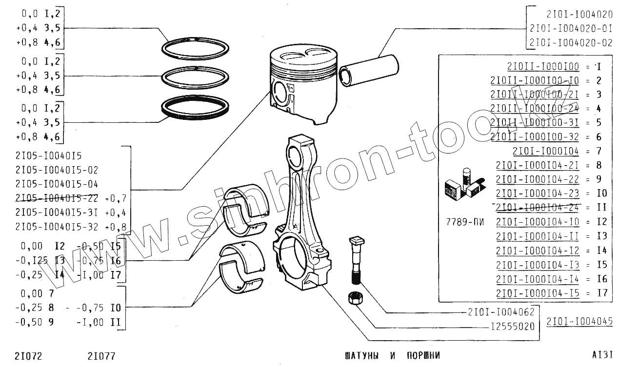 Каталог запасных частей к технике: ВАЗ-2107. Шатуны и поршни