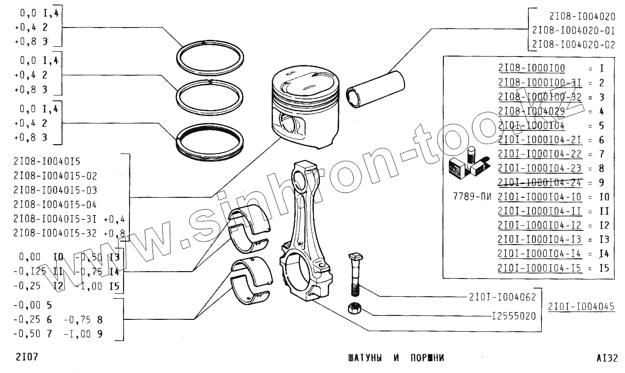 Каталог запасных частей к технике: ВАЗ-2107. Шатуны и поршни