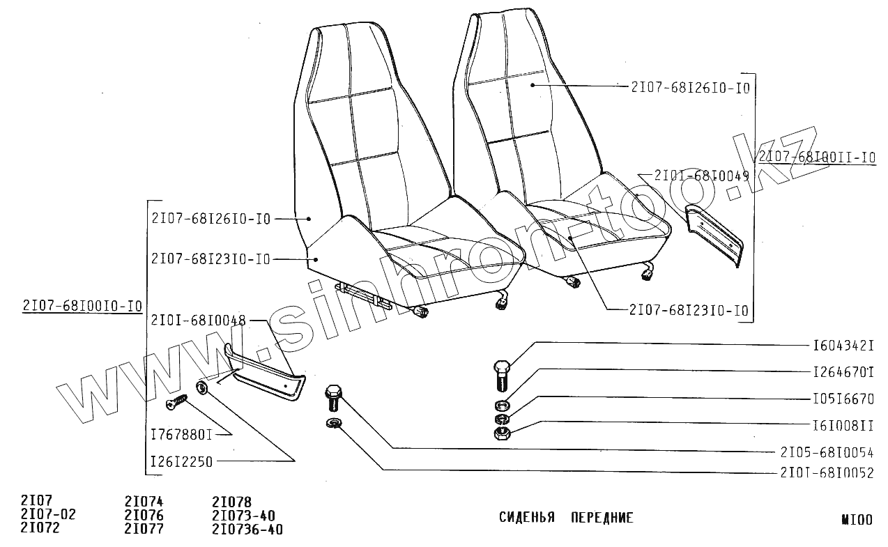 Каталог запасных частей к технике: ВАЗ-2107. Сиденья передние