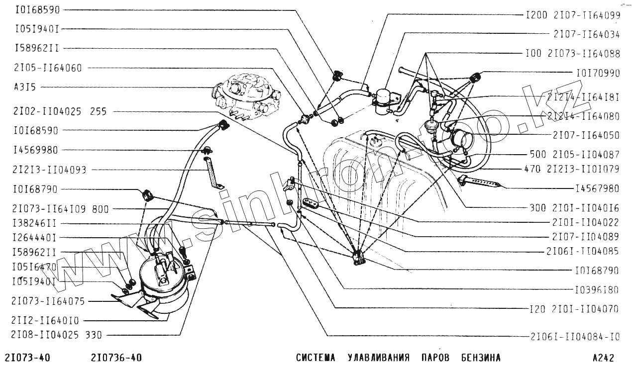 Каталог запасных частей к технике: ВАЗ-2107. Система улавливания паров бензина