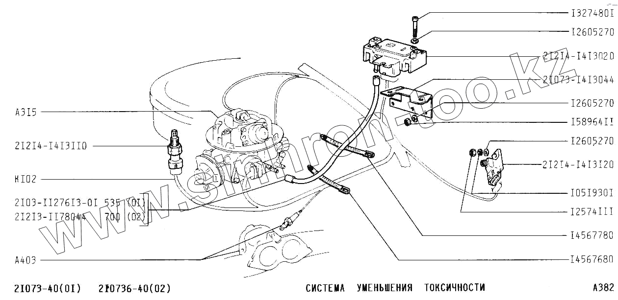 Каталог запасных частей к технике: ВАЗ-2107. Система уменьшения токсичности