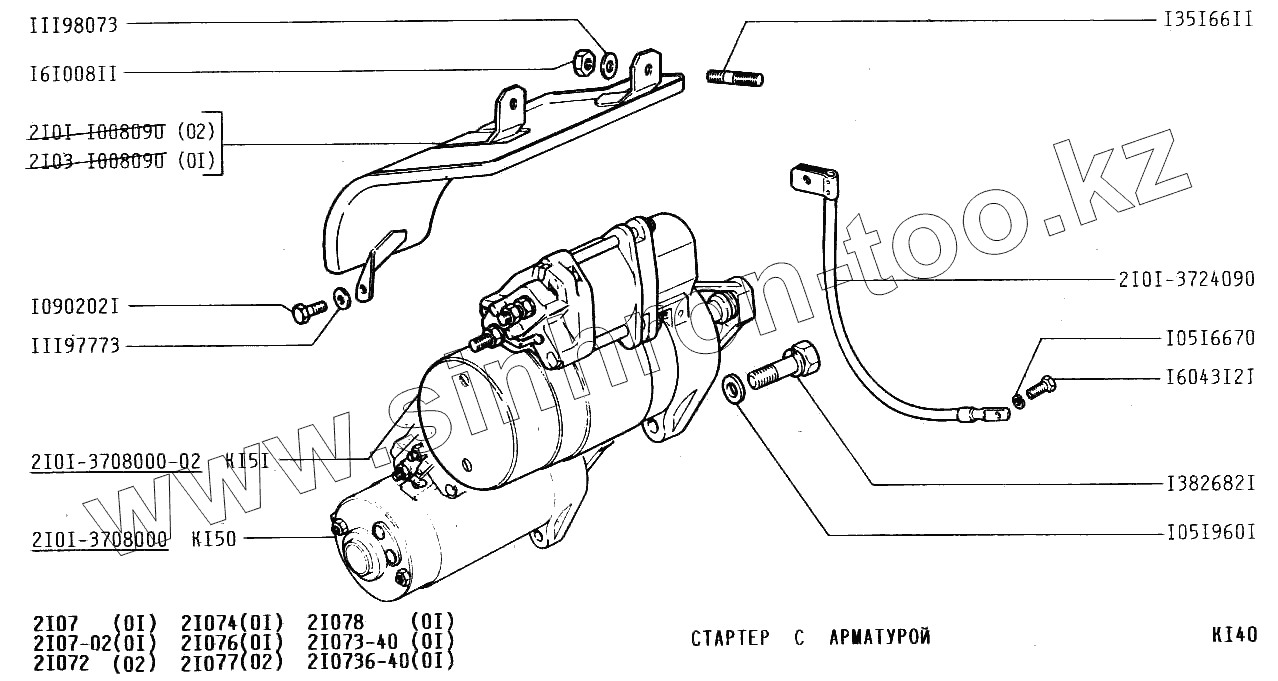 Каталог запасных частей к технике: ВАЗ-2107. Стартер с арматурой