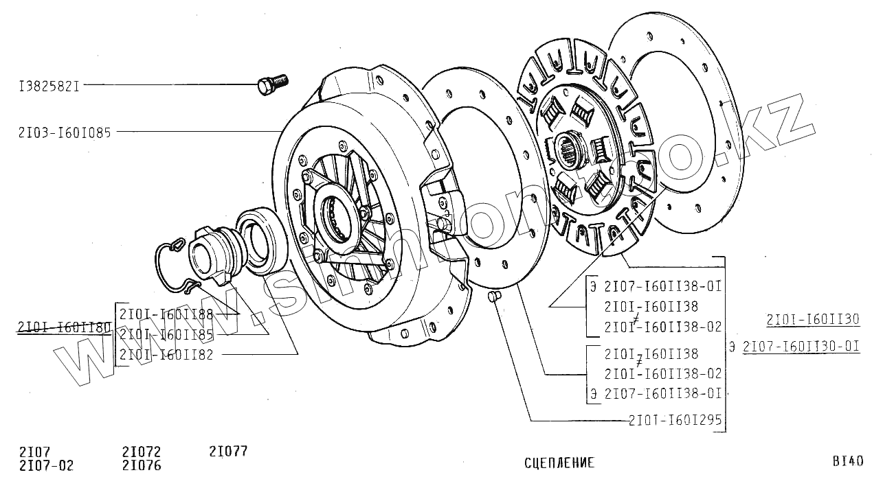Каталог запасных частей к технике: ВАЗ-2107. Сцепление